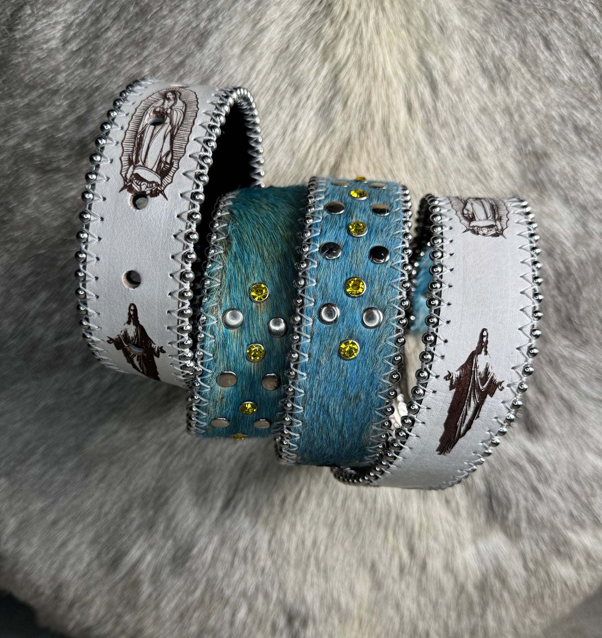 Each cowhide colorway item features a unique rhinestone color and pattern.